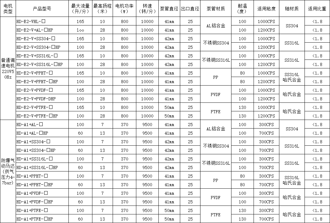 以上产品型号中“□”泵管的长度