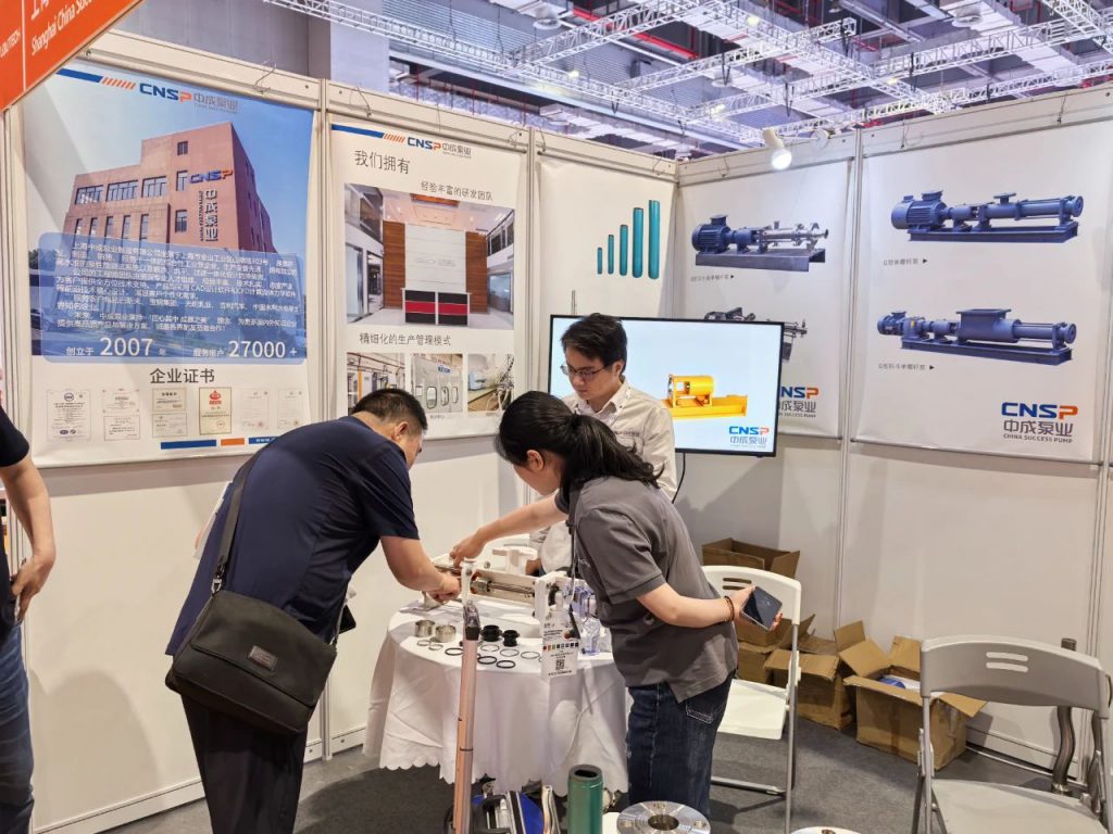 中成泵业展位位于4.1H811,重点展示了螺杆泵及其配件,精致的做工与专业的产品展示吸引了大量观众驻足观望,纷纷向工作人员咨询,成为了展馆中的一道亮丽风景线。