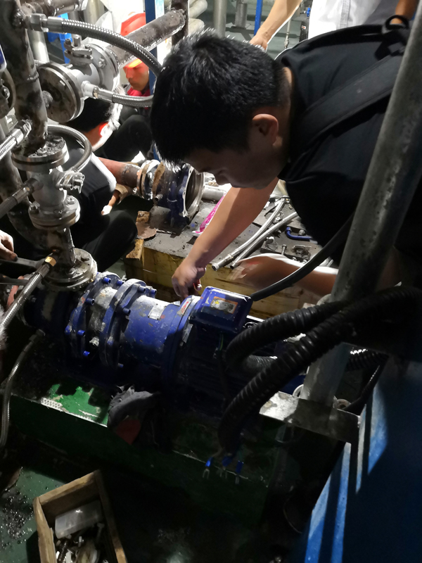 湖北当阳某化纤厂曾在我司采购多款泵型产品,因其采购数量较多,为了保障客户的使用体验,我司派遣两位技术工程师前往客户原厂进行调试指导。